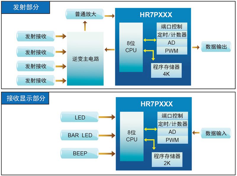 ②采用收發一體的超聲波探頭,發射40KHZ超聲波。