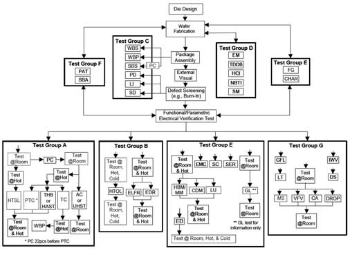 Group A: 環境應力加速驗證Accelerated Environment Stress TestsGroup G: 空腔體封裝綜合測試 Cavity Package Integrity Tests(不適用)