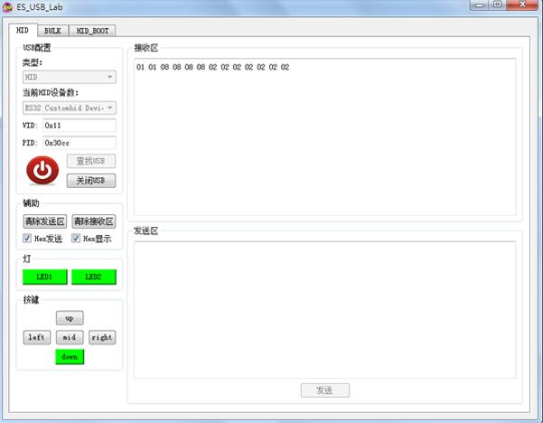 ES-USB-Lab 是一款用戶演示? essemi USB? 協議棧例程中的自定義? BULK? 設備、自定義 HID 設備、HID Bootloader 功能的 PC 端軟件。
